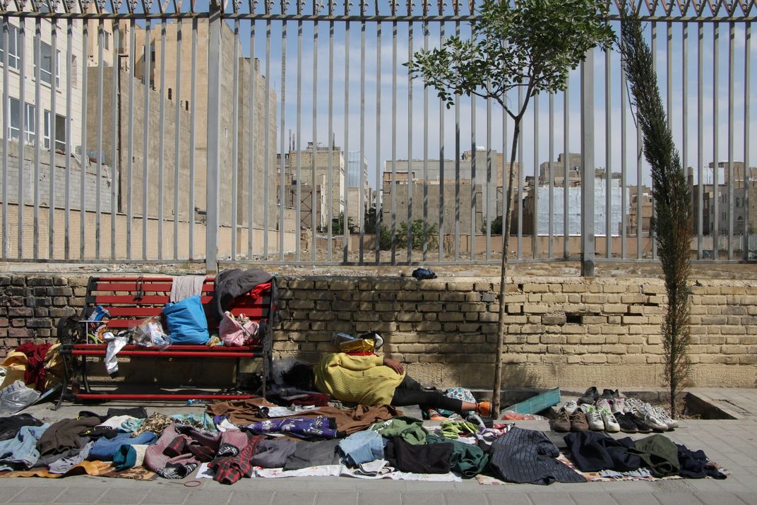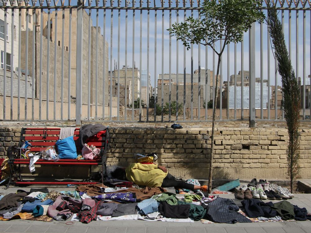 On a quiet street corner, a red bench turns into a silent stall, a space between survival and abandonment. Clothes and belongings are laid out for sale, while the city continues beyond the fence, distant, indifferent. This photograph reflects the quiet struggle of being seen and unseen at once in the heart of urban life.