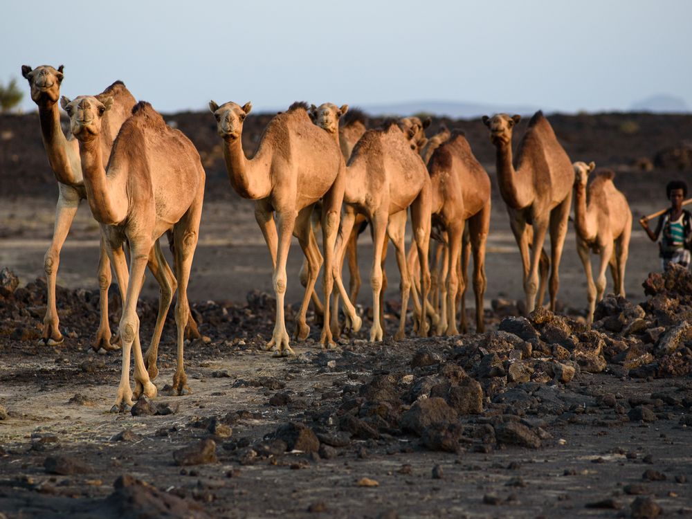 Camels return to a nomadic camp in the Danakil Desert. According to an Afar tribal elder "Camels are the best animals" prized for their strength, resilience, and usefulness. "If you have camels, you can survive. If you have no camels, you have nothing."