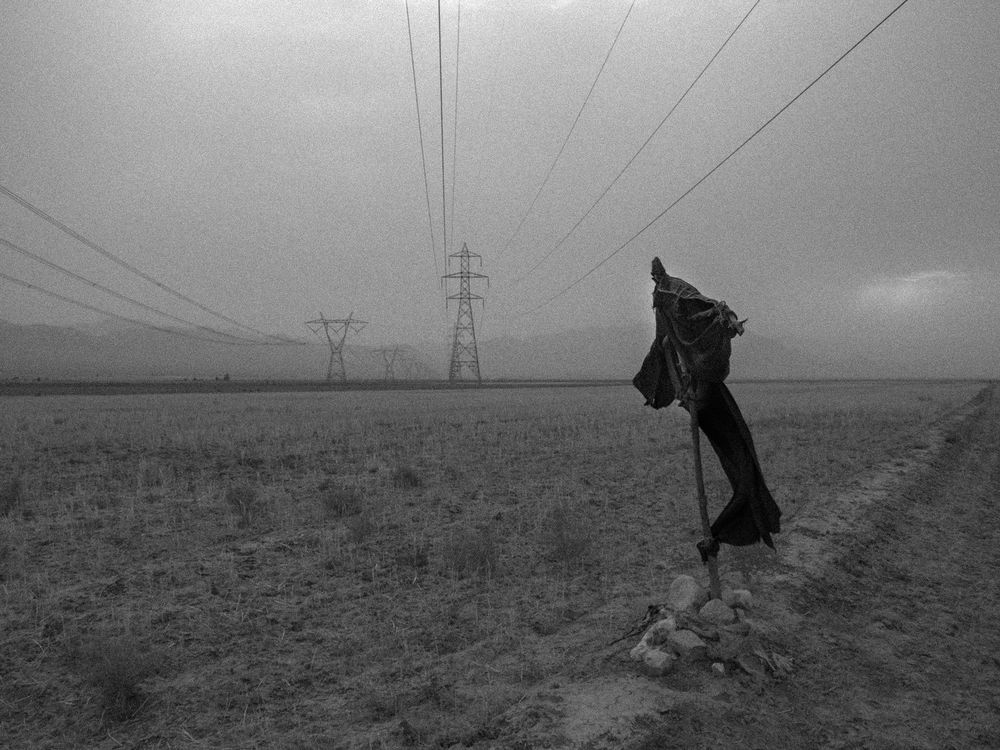 I traveled to many villages this summer and had a wonderful view that satisfied me. I saw a black scarecrow trying to fly in the cloudy and windy weather. I had a scary feeling, the black ghost wanted to fly away in the deathly silence that covered all around . so attractive view .