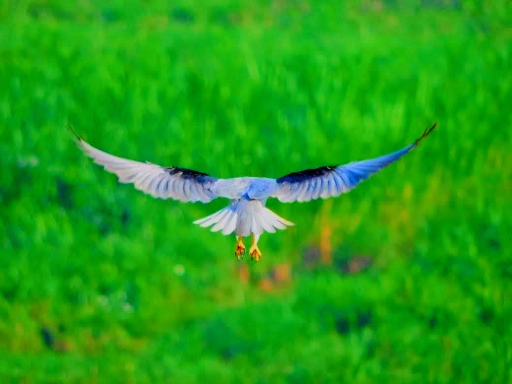 This photo was taken in a Rice field where this white bird was flying over green background in Vijayawada,Andhrapradesh,India
