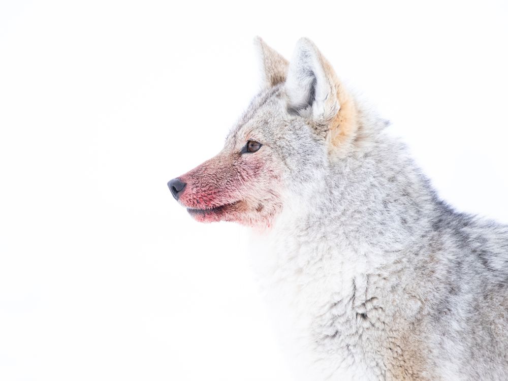 A coyote after having just feasted on a kill.