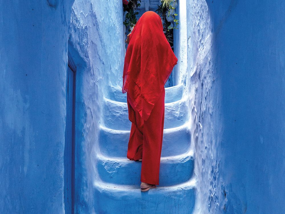 Street scene in the medina of Chefchaouen (Morocco). Chefchaouen is a city known for its medina painted almost entirely in shades of blue. Founded in 1471 as a fortress to fight Portuguese invasions, the town has blended Berber, Jewish, Andalusian and Arab influences over centuries. The blue color, possibly introduced by Jewish refugees in the 1930s, is believed to symbolize the sky or spirituality and has since become a defining feature of the city. The medina’s narrow streets are lined with houses featuring arched doorways, red-tiled roofs and wrought iron balconies. Despite increased tourism in recent years, the town maintains a calm atmosphere shaped by its setting and long history.