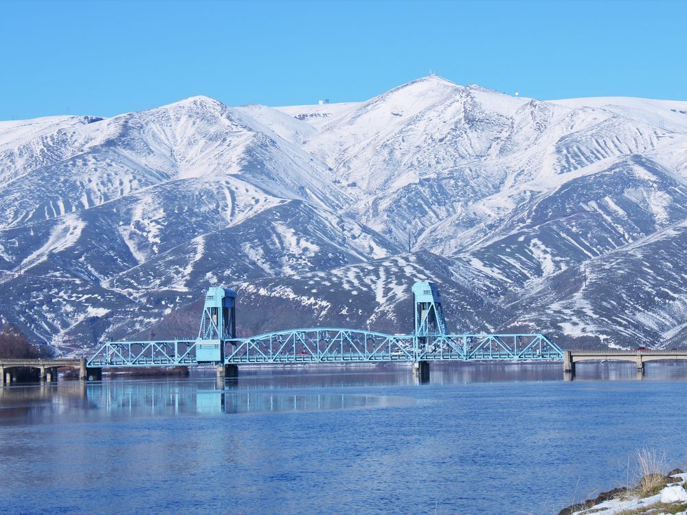 "The Blue Bridge" as it is known to locals, is an icon for many area photographers. The Interstate Highway Bridge crosses the Snake River, between Clarkston, Washington and Lewiston, Idaho. The bridge carries U.S. Route 12 (US 12) across the state line between Washington and Idaho. It was built in 1939.