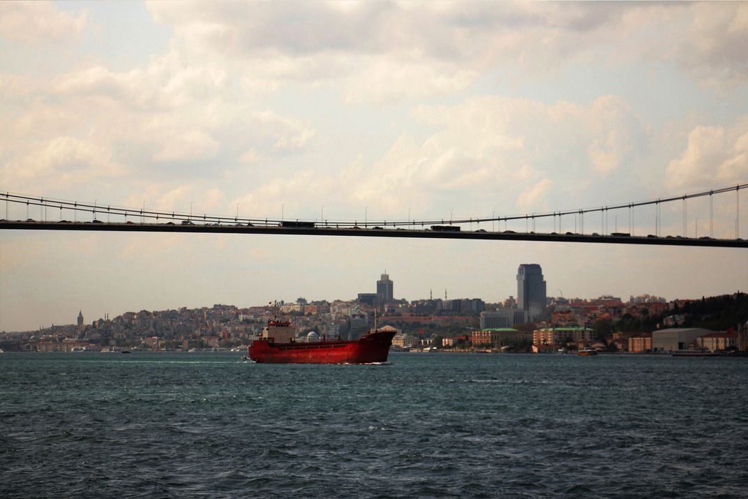 The Bosphorus Bridge or First Bosphorus Bridge (Turkish: Boğaziçi Köprüsü) is a bridge in Istanbul that spans the Bosphorus Strait, connecting the Asian side of Istanbul with the European side of the city. The bridge is a steel suspension bridge that is 1,150 meters long, 39 meters wide, and 105 meters high. The distance from the water level to the bottom of the bridge is 64 meters. Construction of the bridge began in 1970 and it was opened on 30 October 1973. The bridge is located between Ortaköy on the European side and Beylerbeyi on the Asian side of Istanbul.