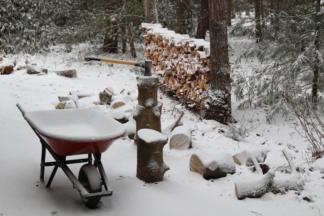The picture shows my wood splitting place. A snowfall the day before forced me to take a break.