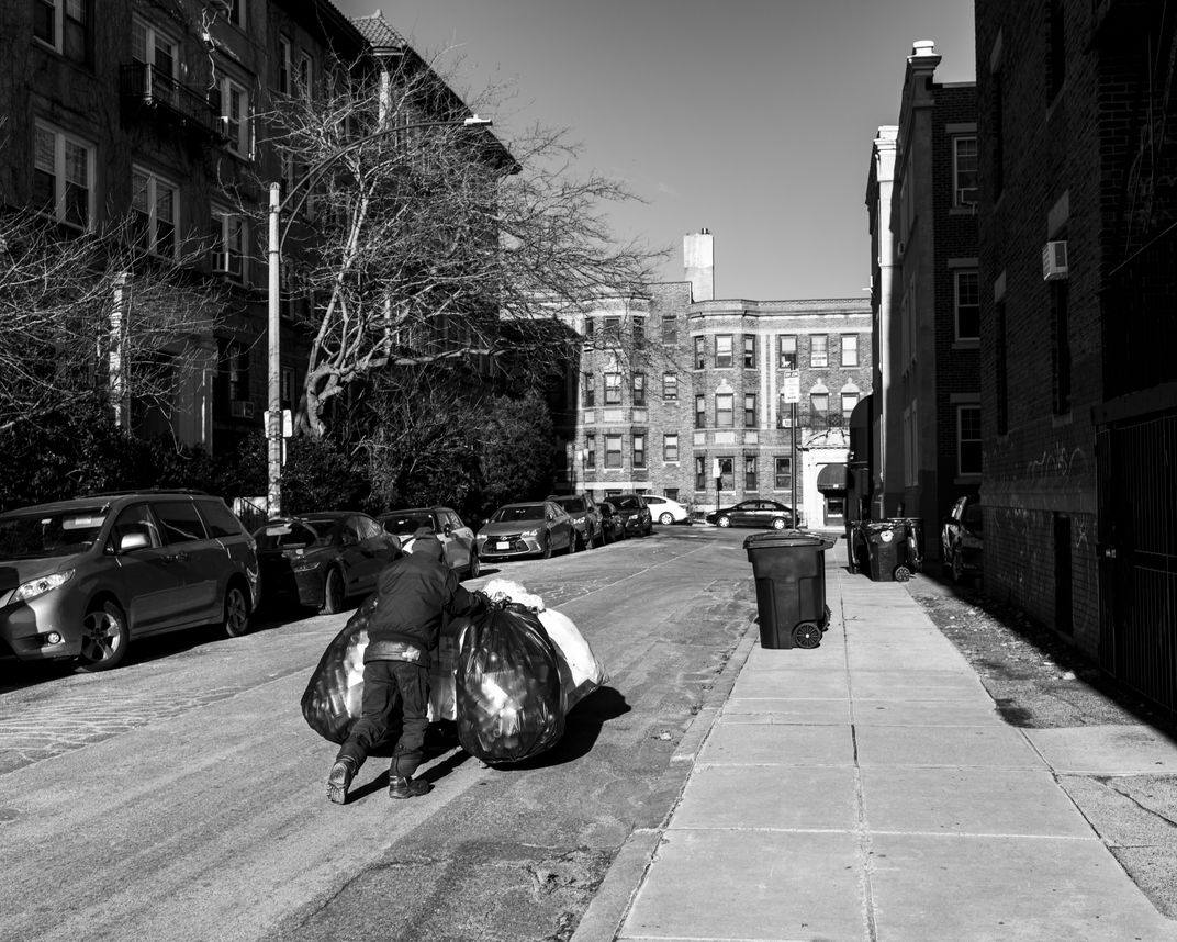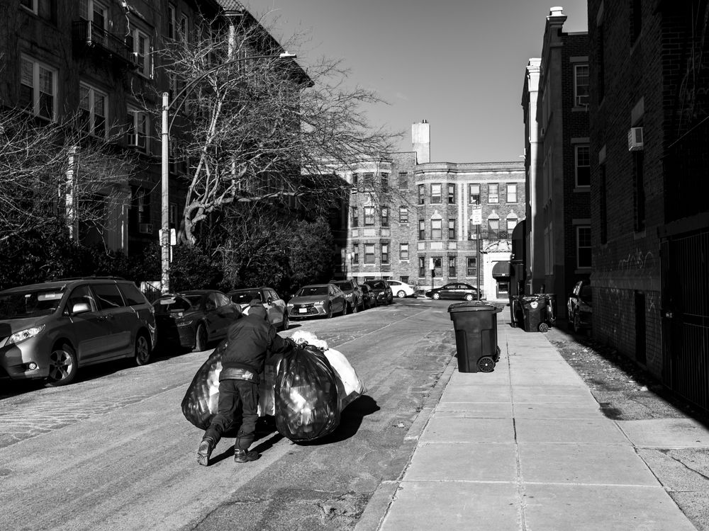 Boston charges five cents per can purchase, and will refund the charge upon return. As such, men walk the neighborhoods collecting cans from recycling bins for extra cash.