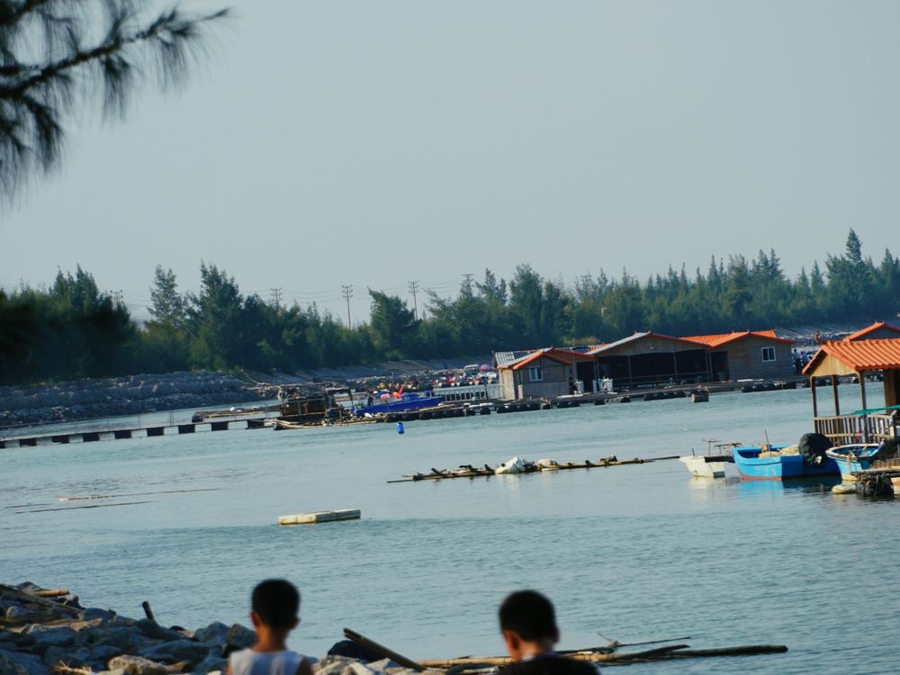 During the vacation, I went back to my hometown and spent time at the beach. I saw these kids looking for shells and crabs in the piles of rocks by the sea, so I took this photo.
