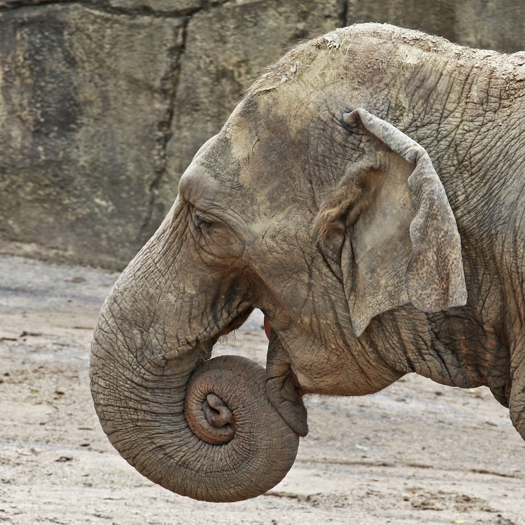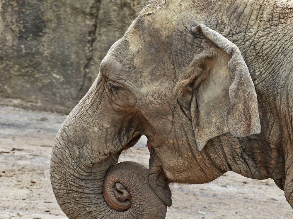 I see this elephant Rolling his trunk and find it coud be a good picture