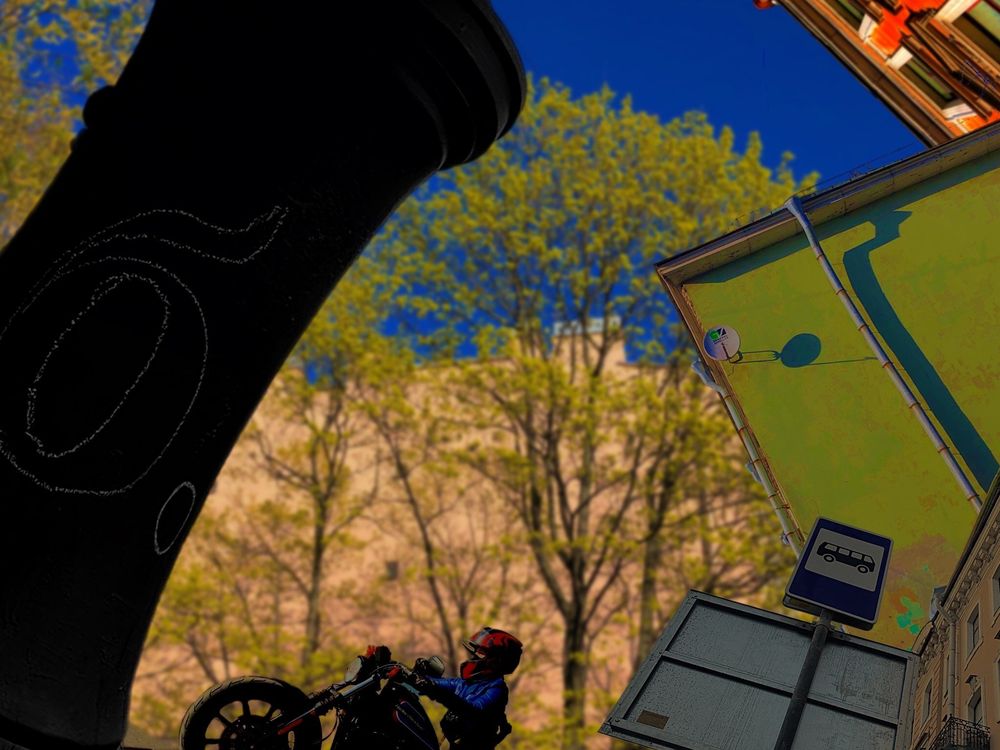 A multi-layered digital collage assembled from fragments of urban space. The work conveys the rhythm of city life, transforming the textural diversity of surfaces into a holistic, dynamic image.