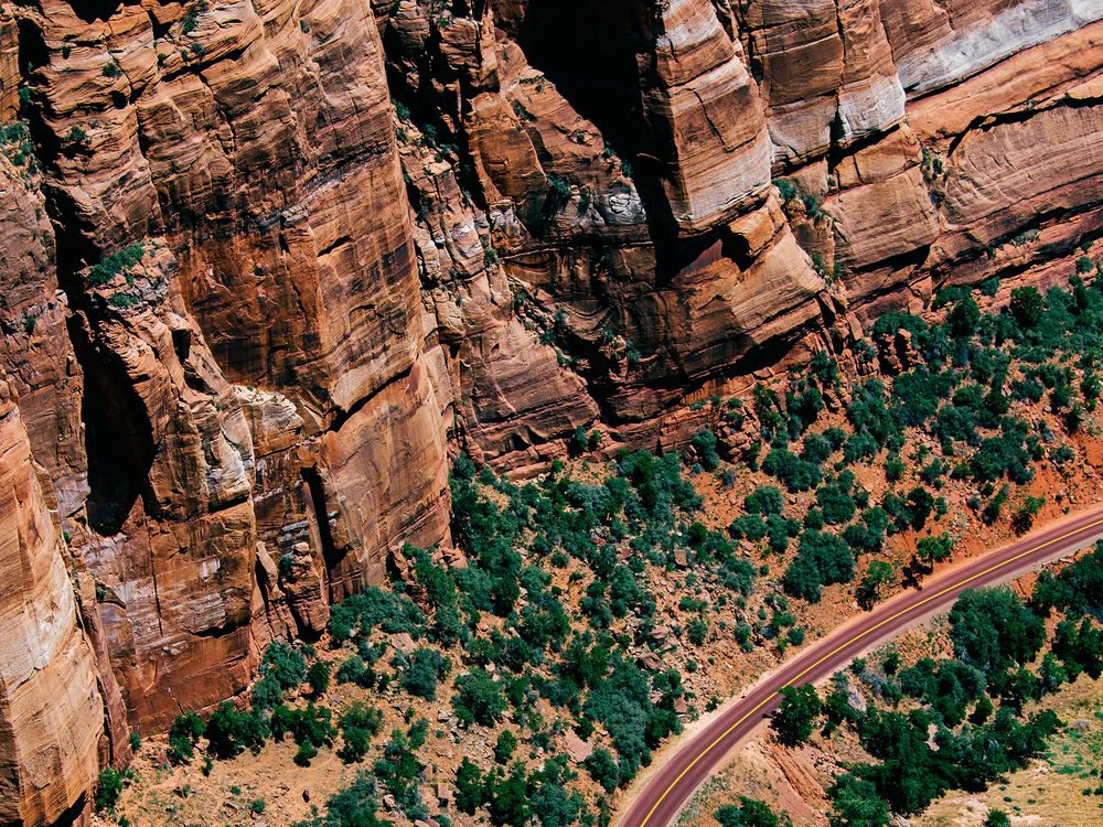 An aerial view from the top of the Angel's Landing, Zion National Park.