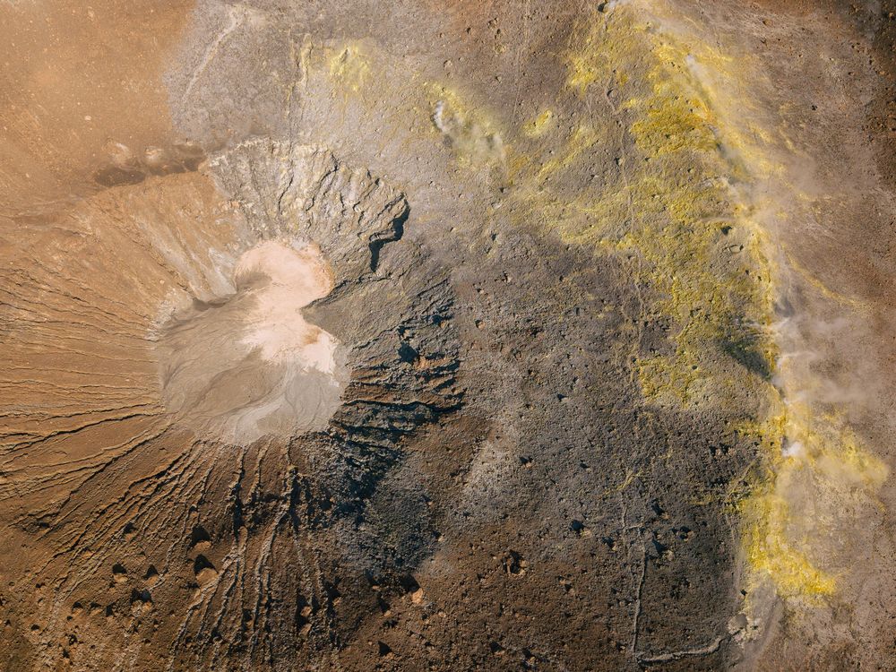 I was following a group of scientists on an expedition in Vulcano, one of the Aeolian Islands in Sicily. We went up the crater early to take some sulphur and rock samples, and I flew my drone to frame the crater, along with the sulphuric emissions that paint the rocks yellow.