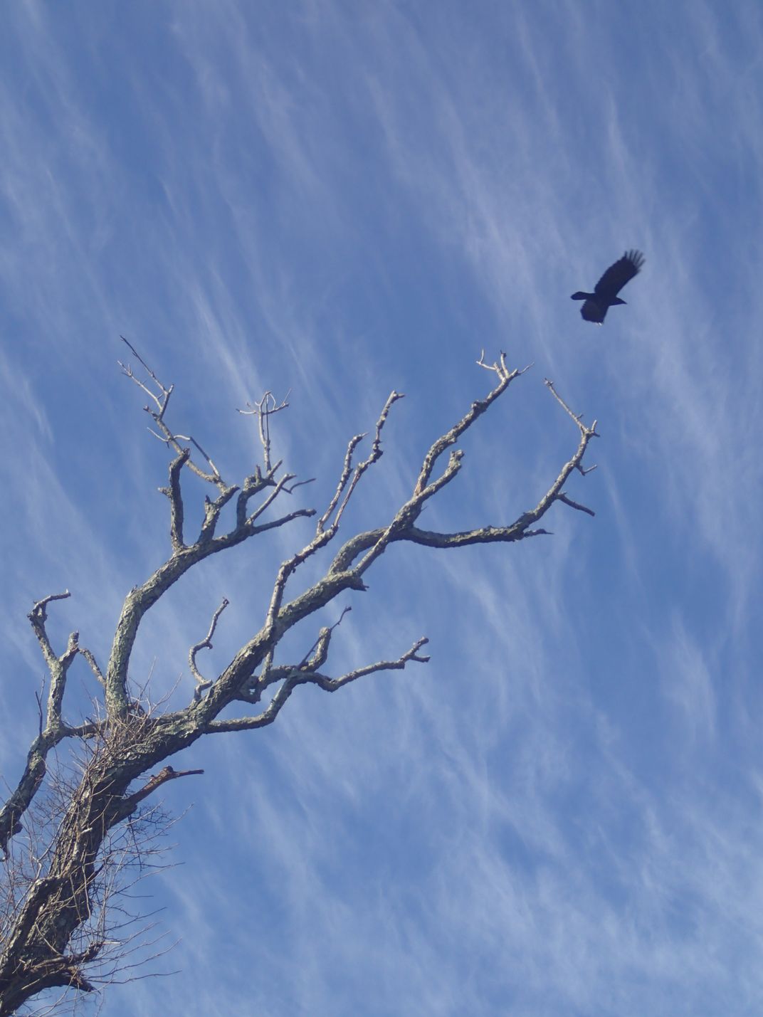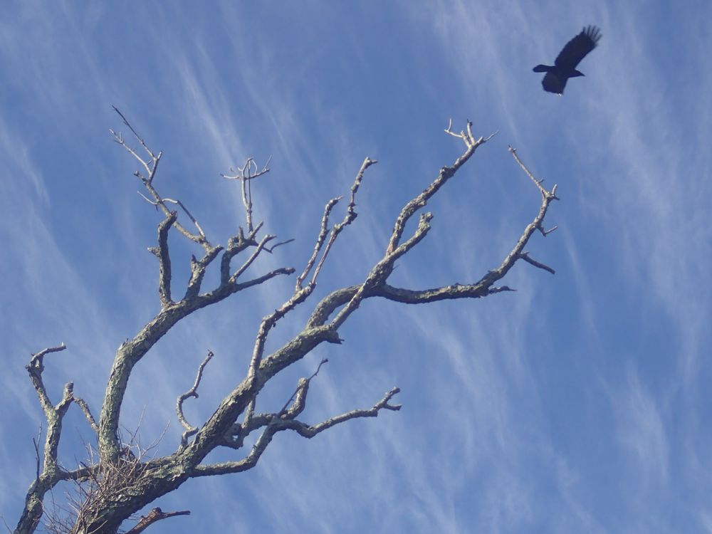 I was walking through a field on Aquidneck Island when I noticed these crows on an old dead trees.I walked slowly,quietly towards them & waited for the right moment. ...as the crow did.