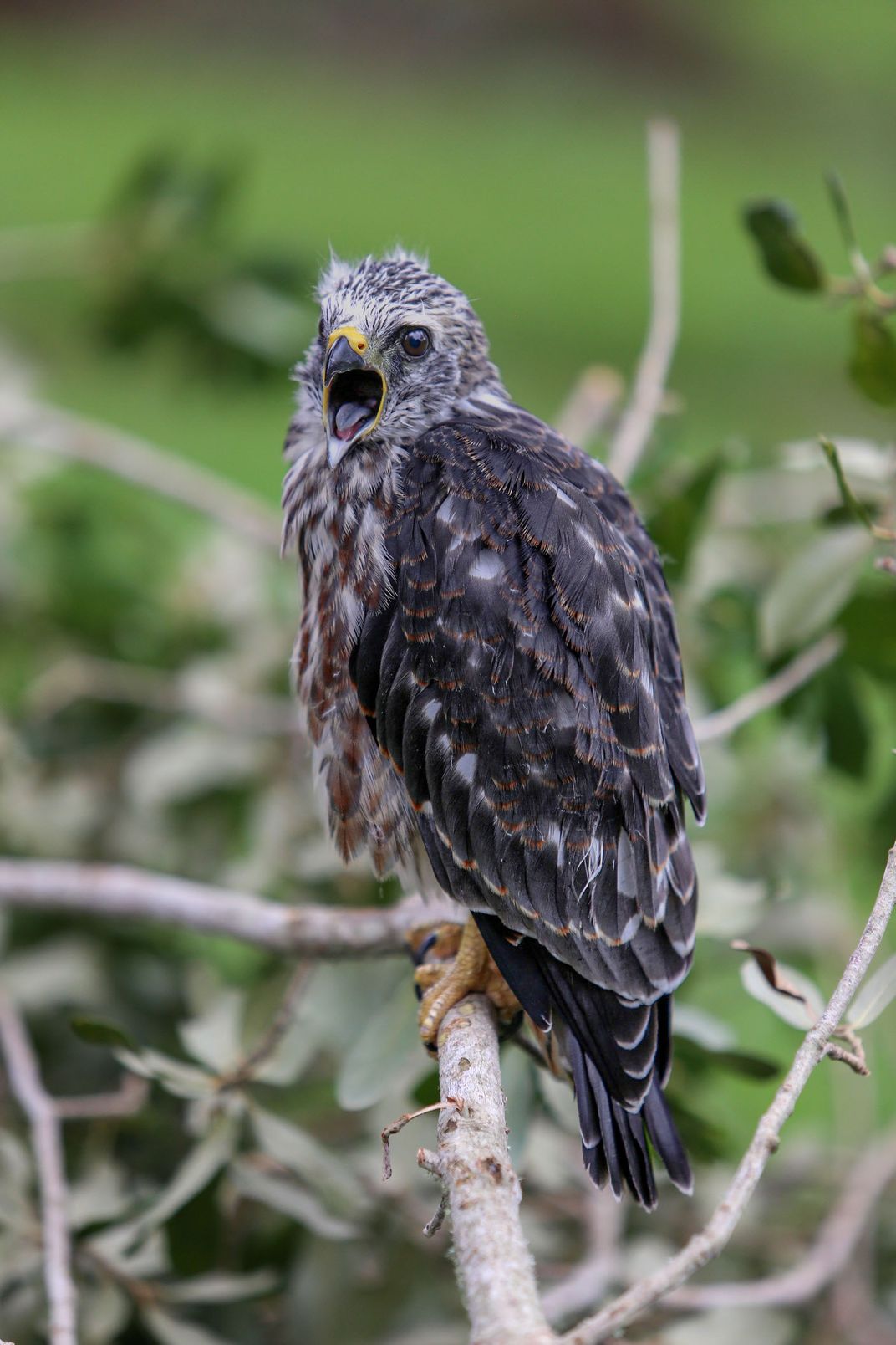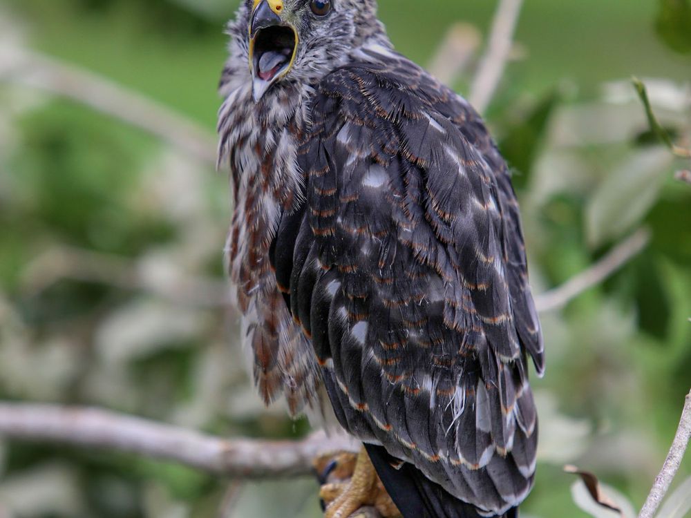 Baby hawk found sitting on a branch, refusing to fly after hurricane Beryl.