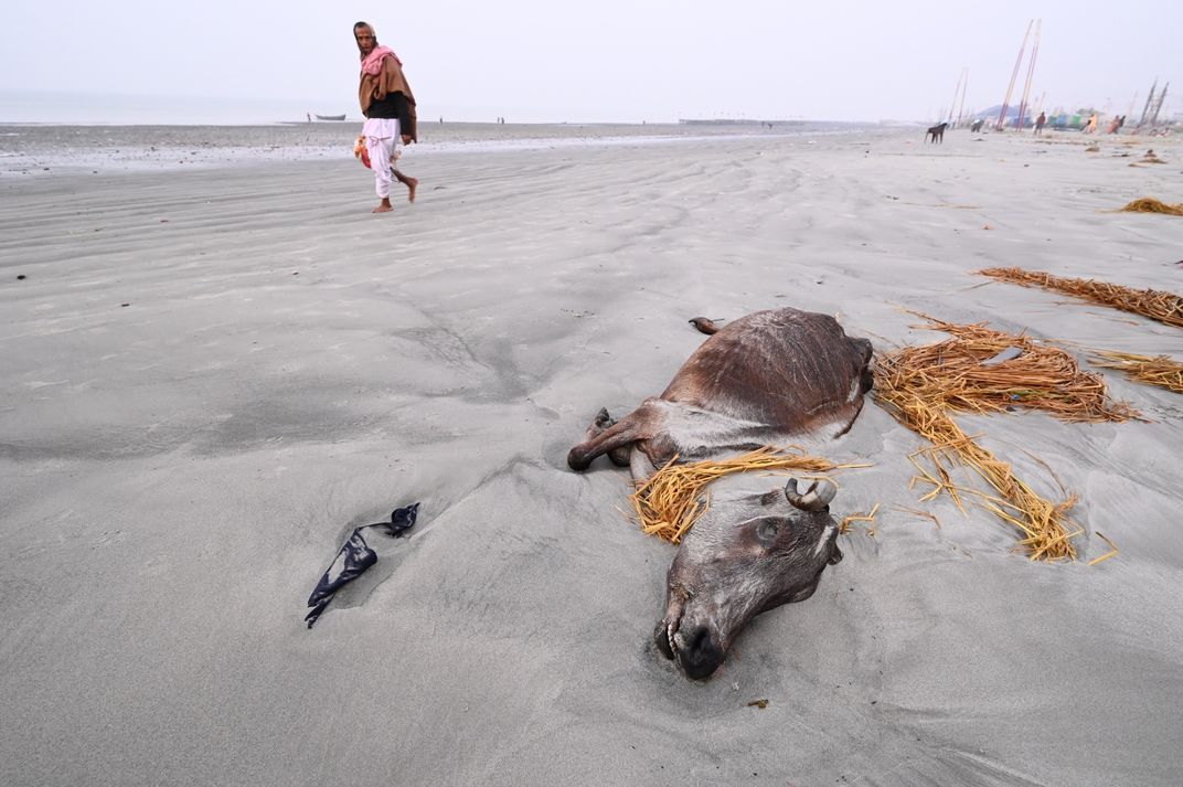 Death is common to all. According to devout Hindus, death is also the gateway to the other life where the soul finds true freedom. The dead cow probably reminds the priest of the significance of death in his spiritual journey.
