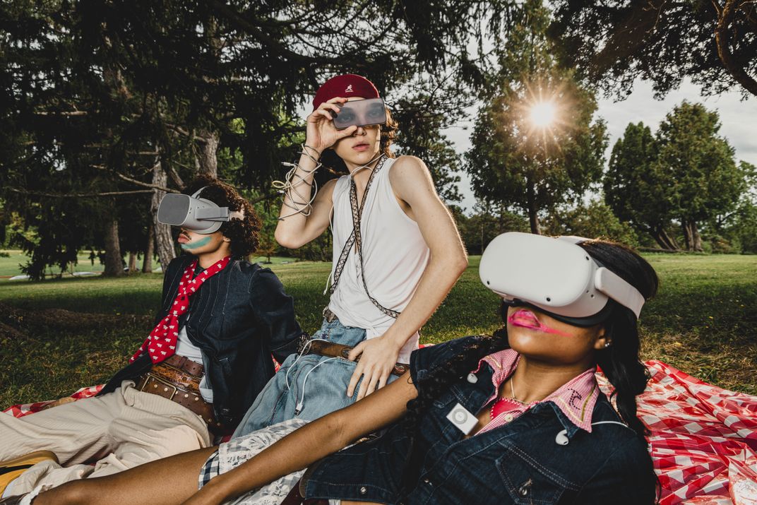 Inspired by the traditional American Dream image of the classic outdoor picnic, three friends are completely disconnected from what's happening in front of them, and the lone friend without a virtual headset is left to observe this reality. This photo illustration, “Picnic for One,” reimagines the American Dream through a modern lens, questioning our growing disconnection and dependence on virtual escape.