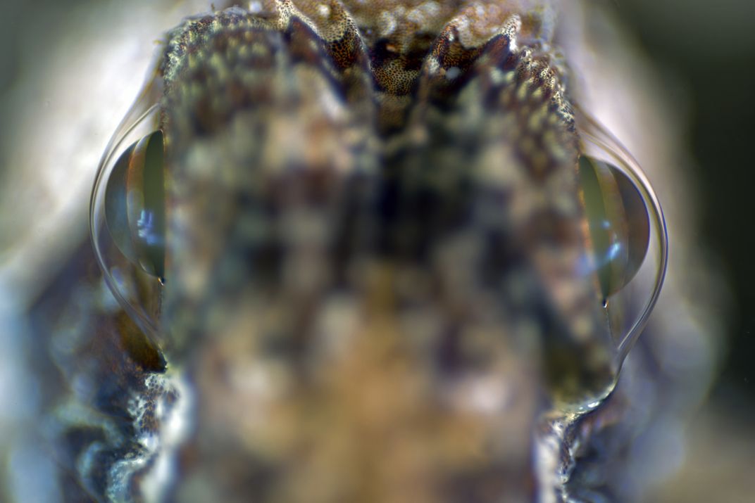 The picture represents a juvenile scorpionfish portrait (face on) taken with a 20mm reversed to achieve a 4.5:1 reproduction ratio.