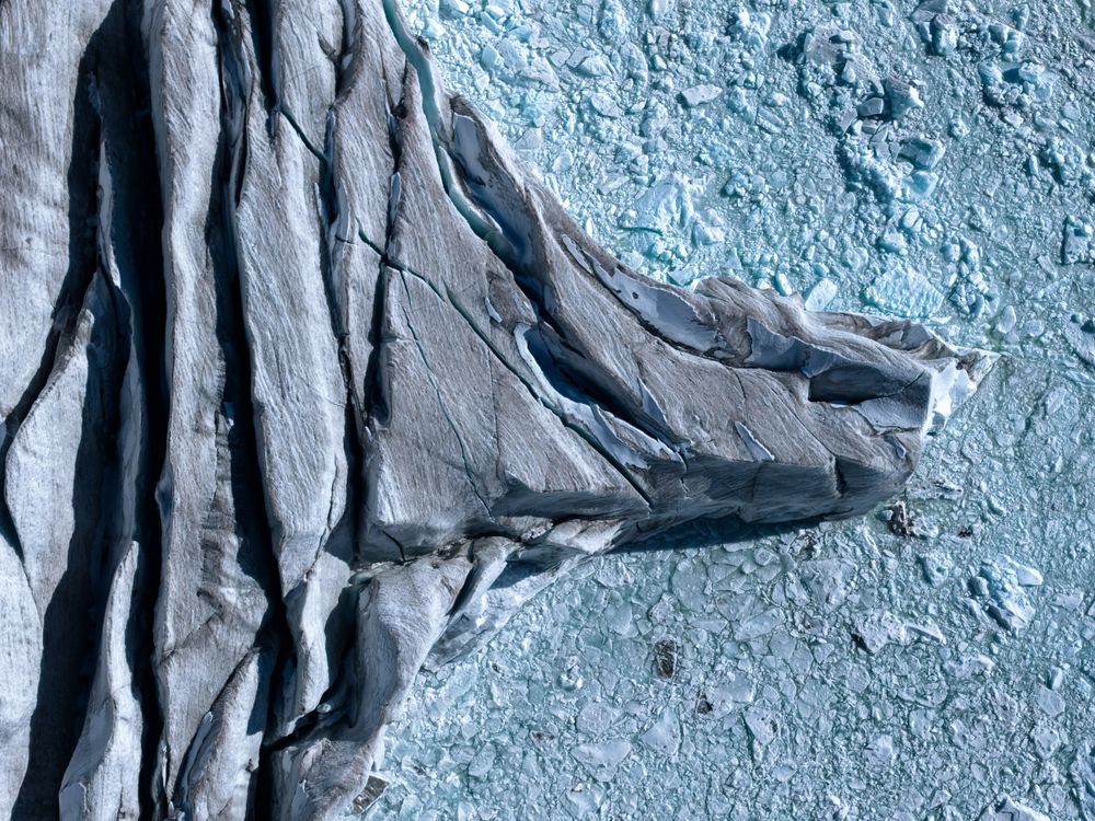 I was on the Fellarìa glacier for a commercial shooting. The glacier has gone through major loss of ice mass in the last century. While flying my drone to take some footage for the client, I was able to take the time to capture personal shots to document the peculiar shape of the glacier.