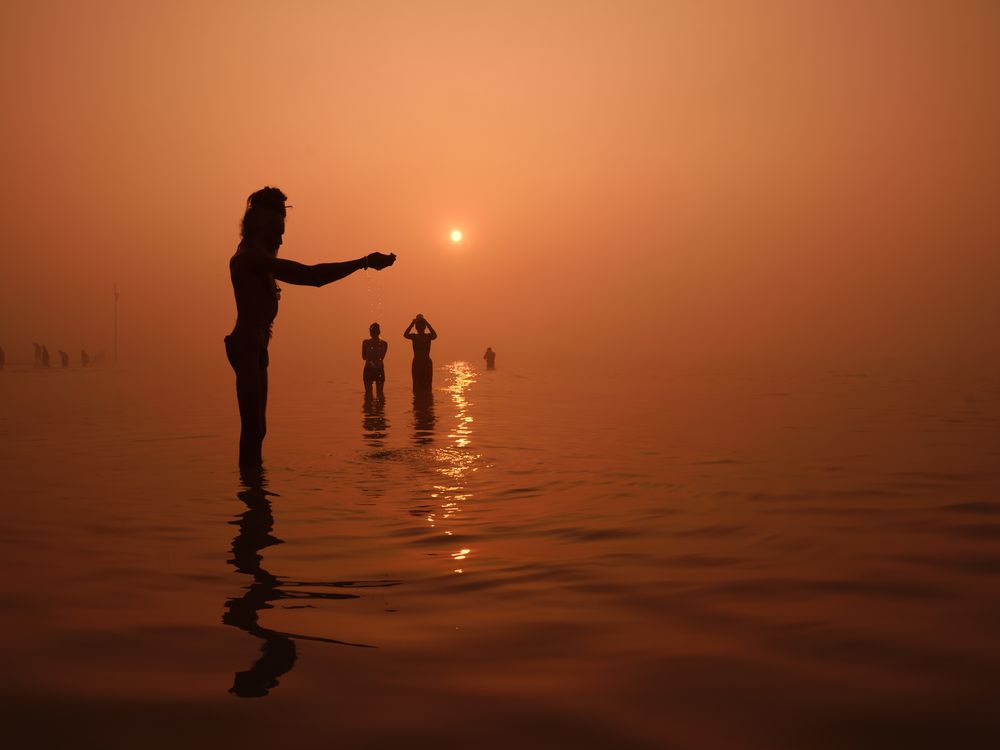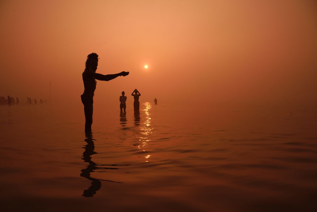 As the sun ascends through the morning haze, hands rise in reverence, releasing sacred drops into the river. A scene of peace and faith, where tradition flows as endlessly as the waters themselves.