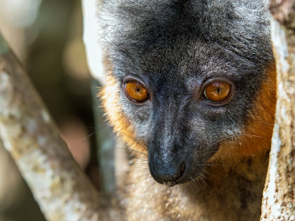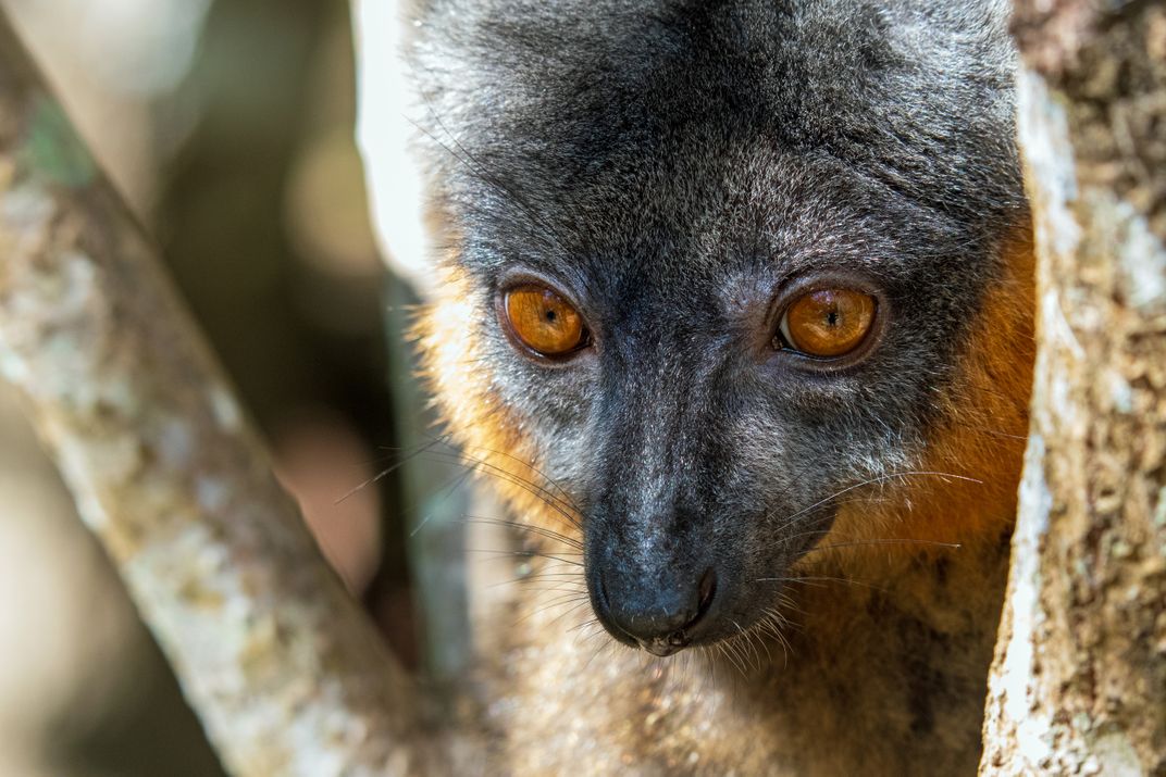 Portrait of a Common brown lemur at Saiadi botanical garden north of Tolagnaro (Fort Dauphin).