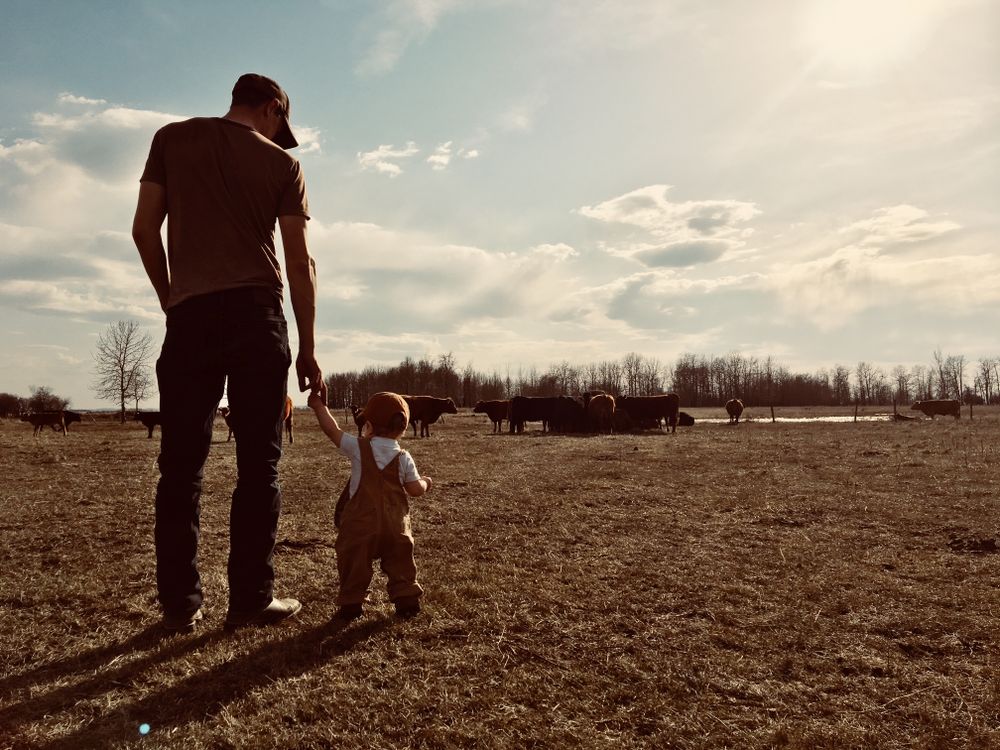 A 4th generation farmer showing his son the cows. A little boy who loves the farm and adores his dad. A 5th generation farmer in the making.