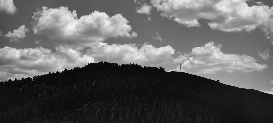 The famous Gostilj hill in the Balkans, on which there is a large cross 12 meters high