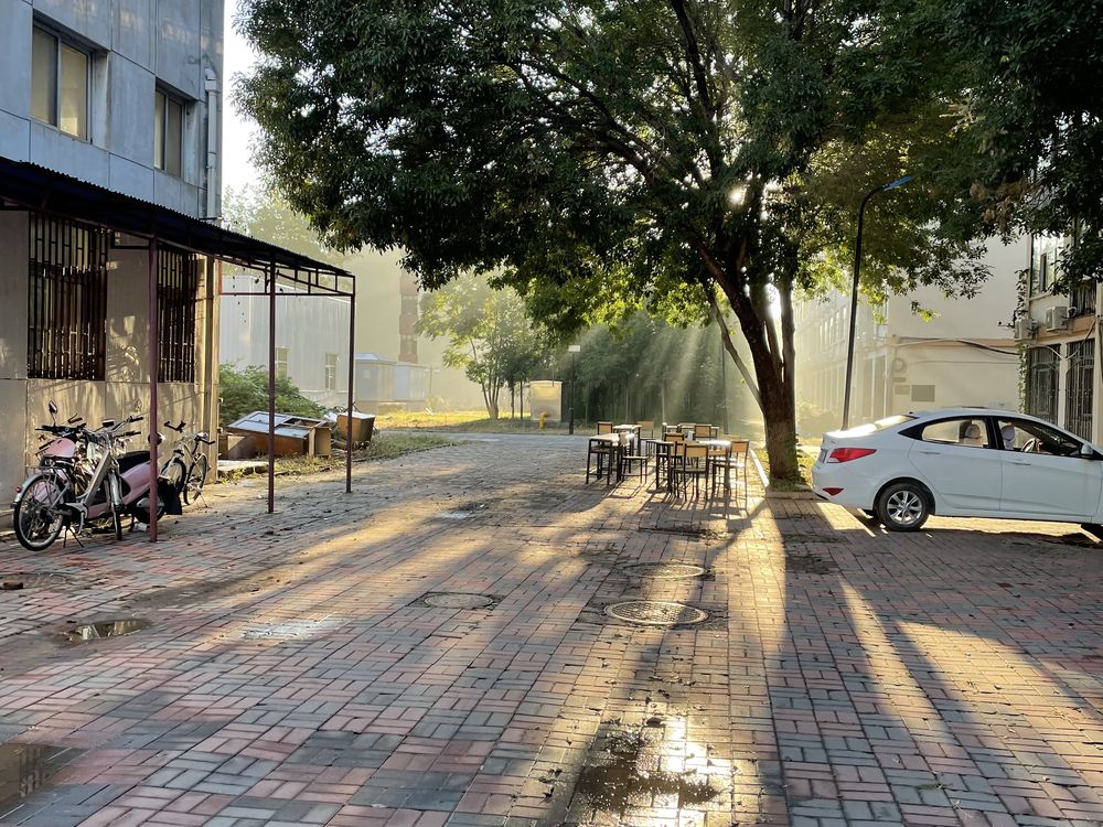 The first ray of sunshine in the morning on campus