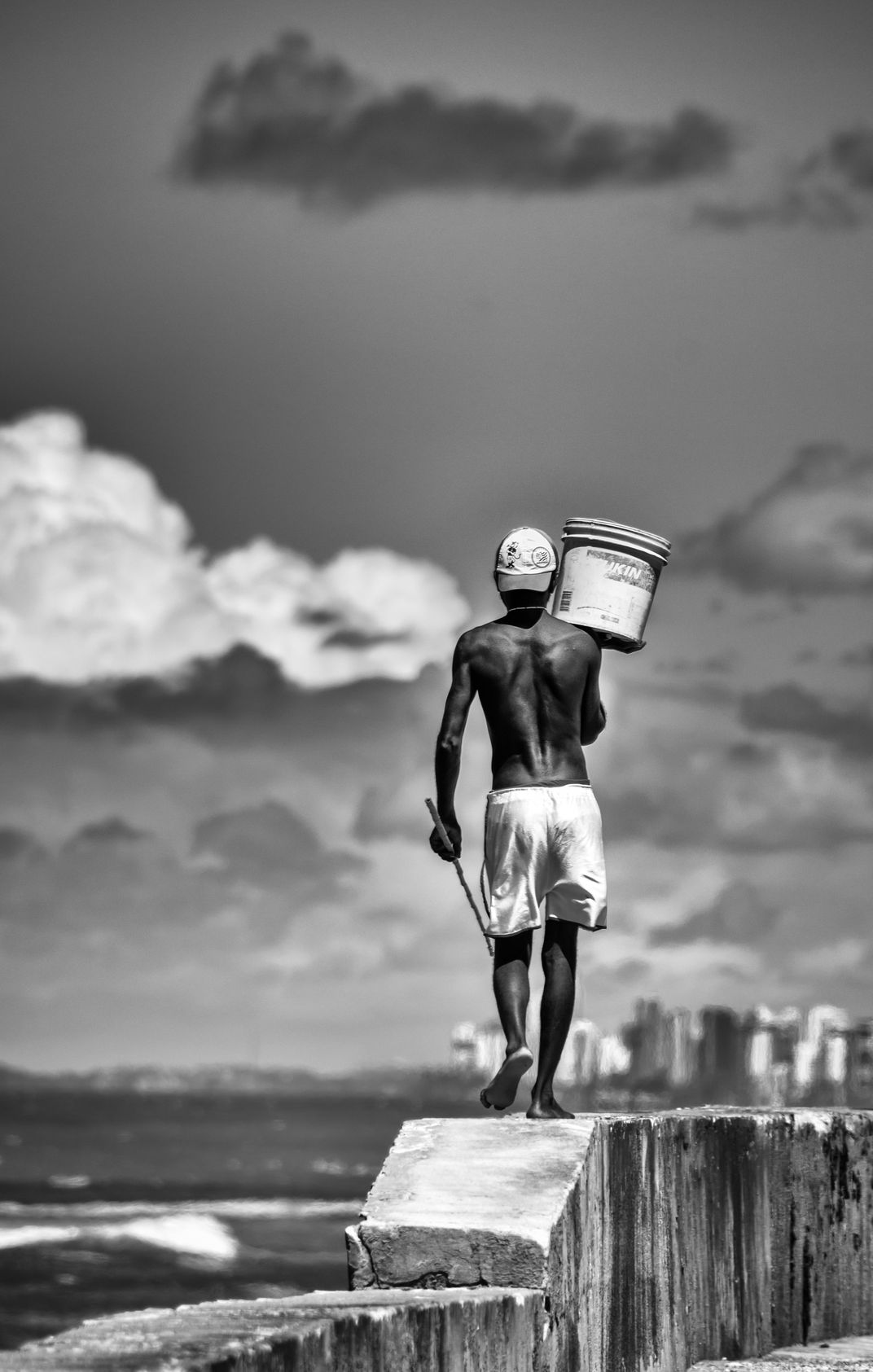 I was taking pictures in a fishing area, then I saw this man walking in this wall, it seemed to me that he was between the sky and earth