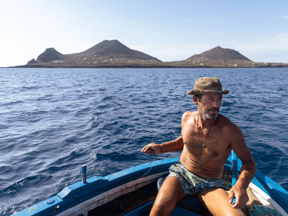 Fabrizio, 43, was born and raised on the remote island of Linosa. Whenever he has spare time, and when the sea allows, he takes his small boat and goes fishing with an old technique that only uses a fishing line and bait.