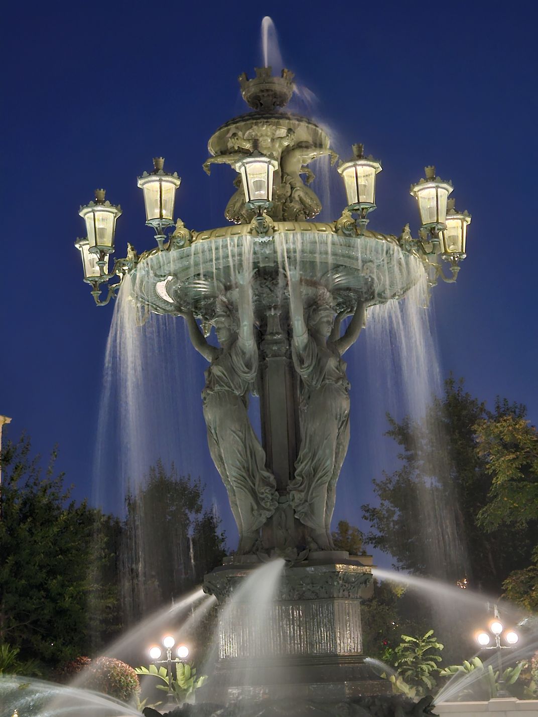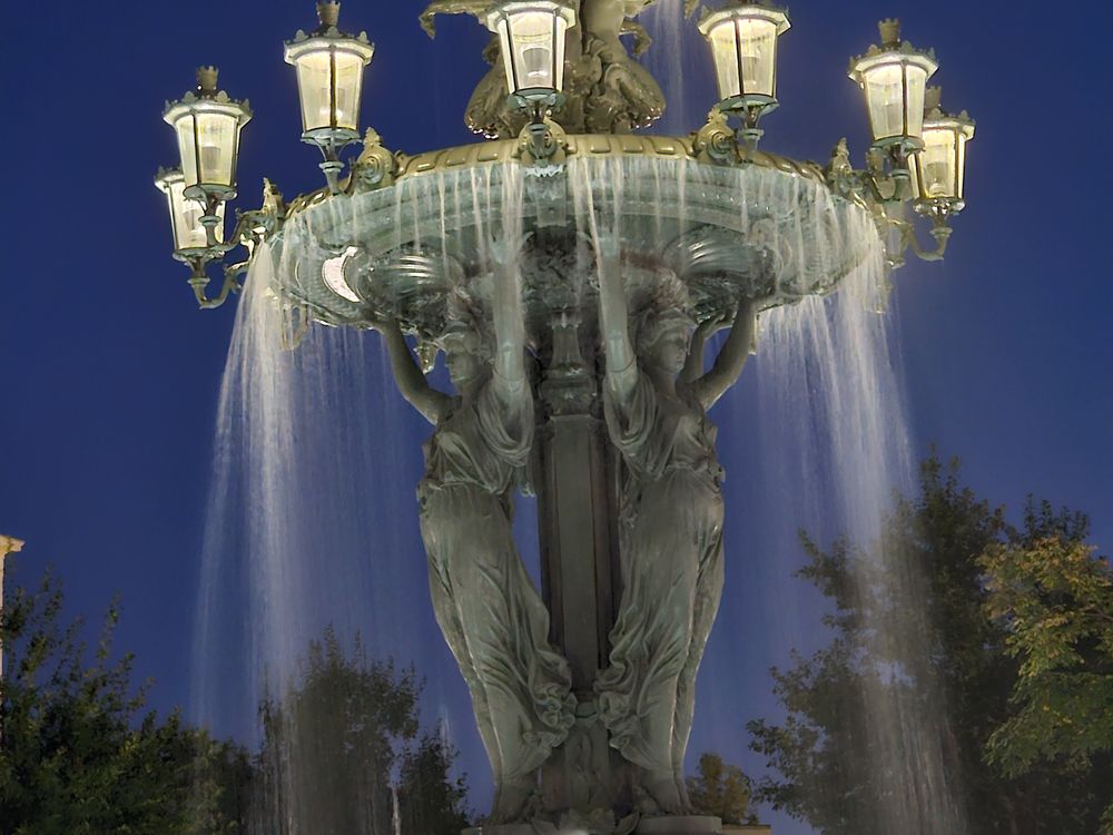 The fountain of Water and Light ( Bartholdy fountain) at night with water running