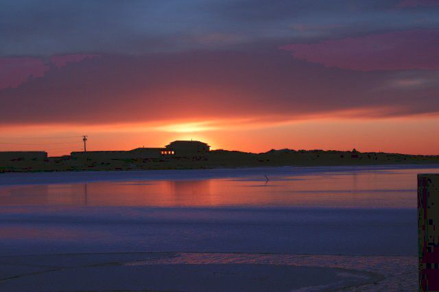 The frozen harbor of Watch Hill RI at sunset. Plenty of parking this time of year.