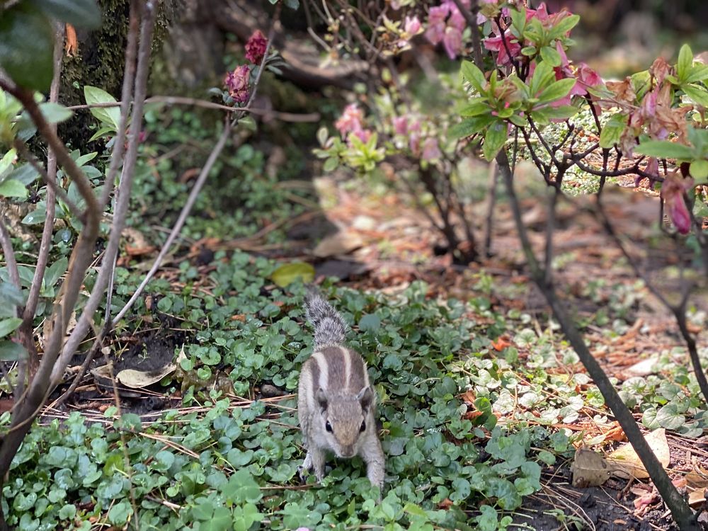 The garden of dreams has its own greeter. This little Kathmandu local decides to pause its nut-finding mission to closely inspect our hands. Perhaps it was hoping we had snacks, or maybe it was just checking our vibes. What a curious character!