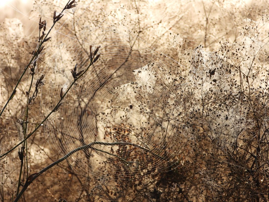 In the autumn morning hours, when the air trembles with coolness and the first ray of the belated sun falls on the meadow herbs, an unforgettable picture opens before us. Around as if by magic, a skillfully woven lace appears. Translucent threads are formed into amazing ornaments and shapes, creating unimaginable geometric interiors of nature. Thousands of spider webs fill the meadow valley, merging into a single mosaic. And in the very center of the pattern you can notice a small shadow - it is the source of this lace weaving, a crab spider.