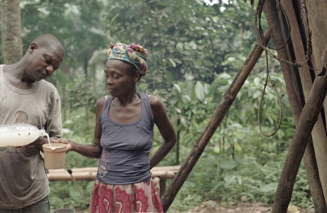 Palm wine pouring. It reminds me of a Vermeer painting.