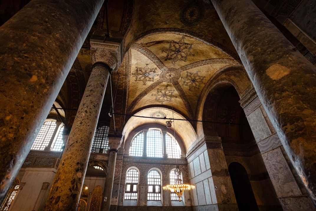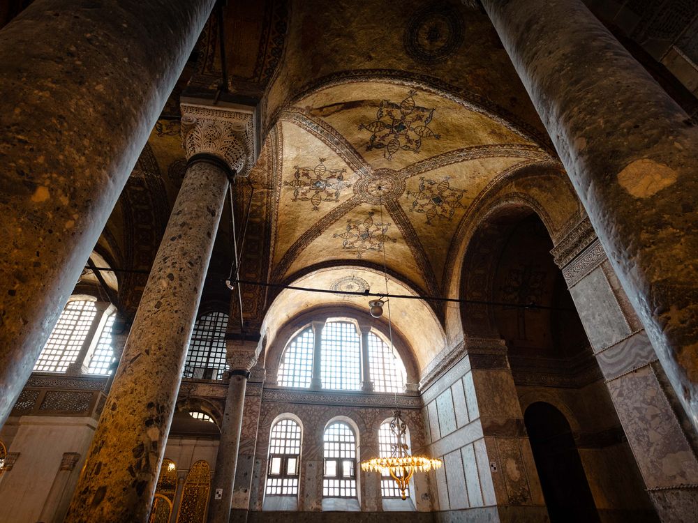 Tall pillars frame and lift the gaze to a golden zenith. Here, a luminous quatrefoil ceiling, its four identical quadrants a legacy of the building's Christian genesis—glows with light from great windows. It is an architectural palimpsest, where divine geometry transcends faith.