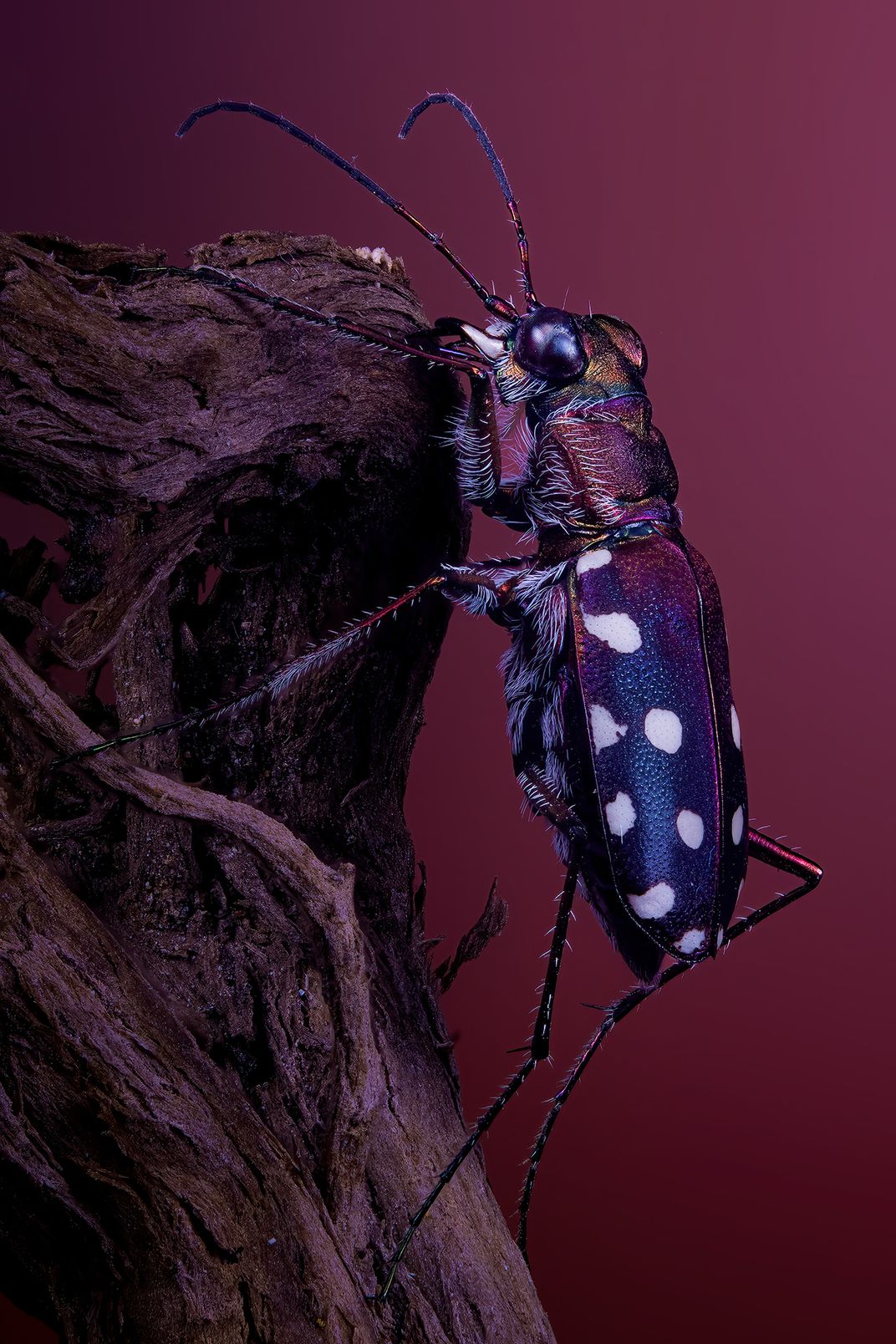 “The Jewel of the Wild” captures a tiger beetle with its vibrant, jewel-like colors, shimmering against its natural habitat — a striking display of the delicate beauty and brilliance of wildlife.