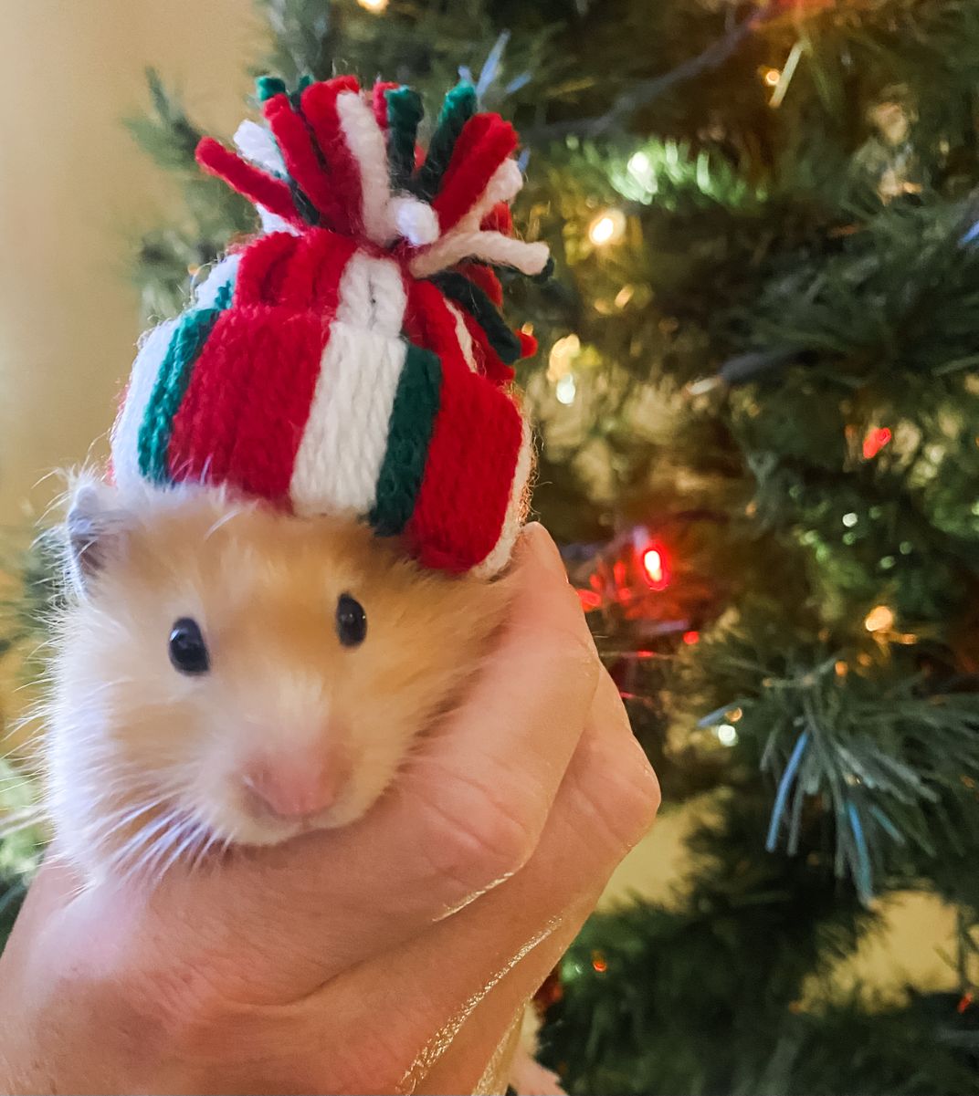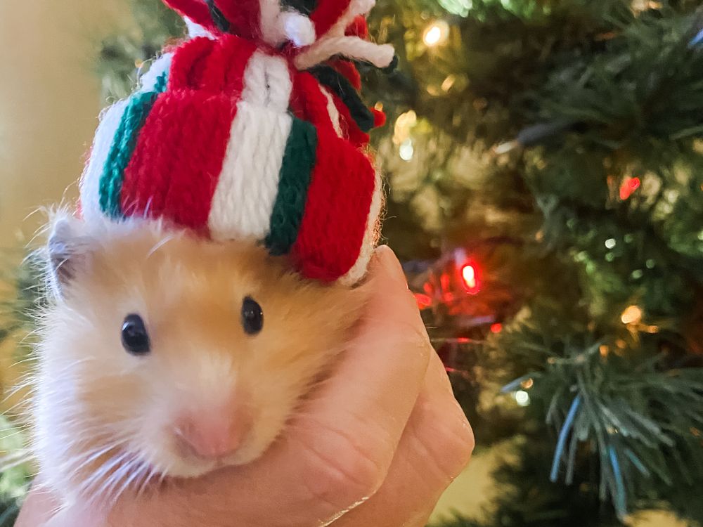 This hamster (Confetti) was a birthday gift and she brings more joy to our family than we could have ever imagined! Our family was working on Christmas crafts and created little "beanie" hats to make a garland. Instead, the assortment of hats adorned Confetti's head for a photo shoot. The amount of giggles, oooooh's and awe's, love and shear joy was present as she posed so patiently! Happy Holidays!
