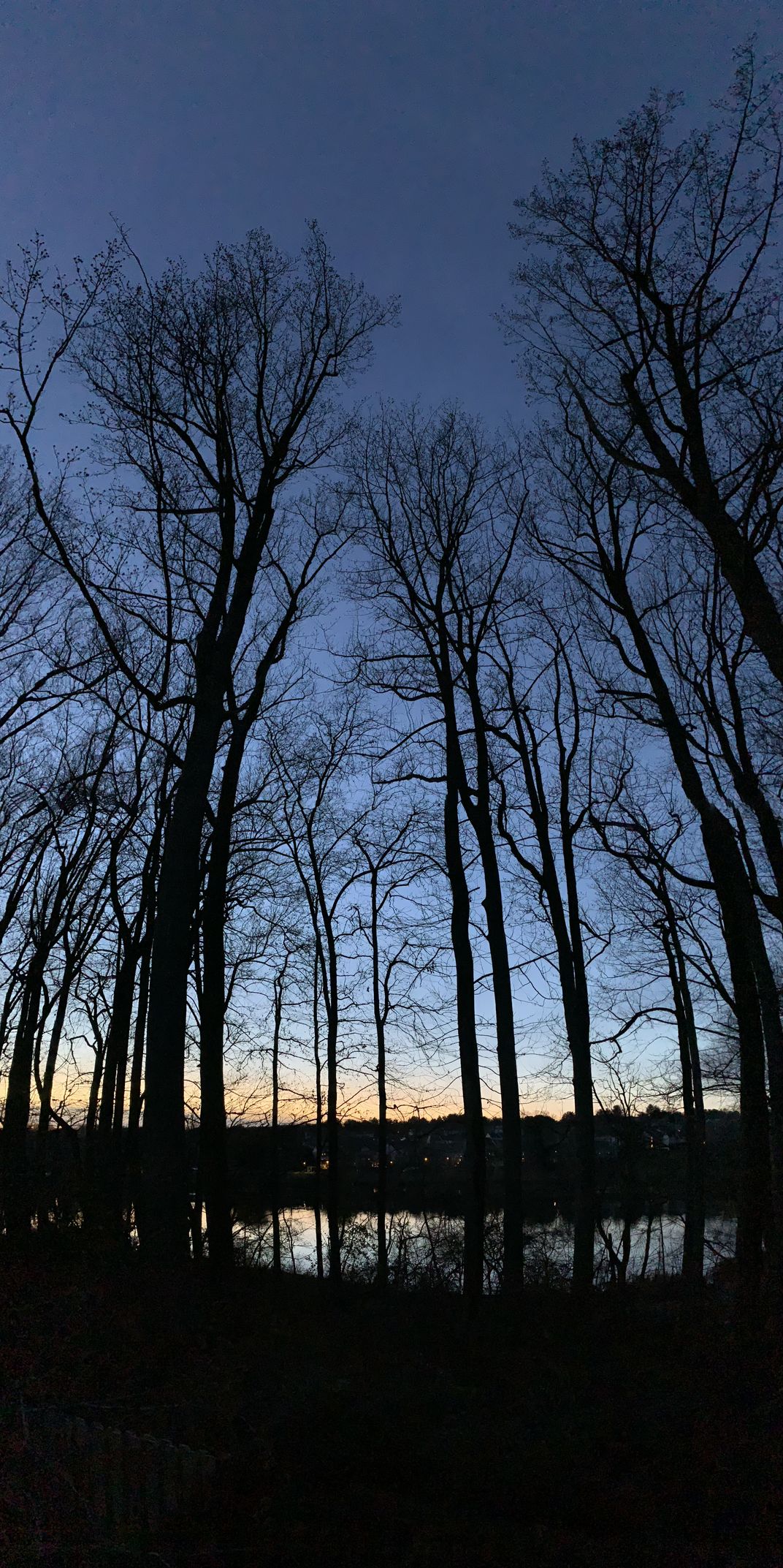 Overlooking my neighborhood lake from the back porch just after sunset. These blues take my blues away.