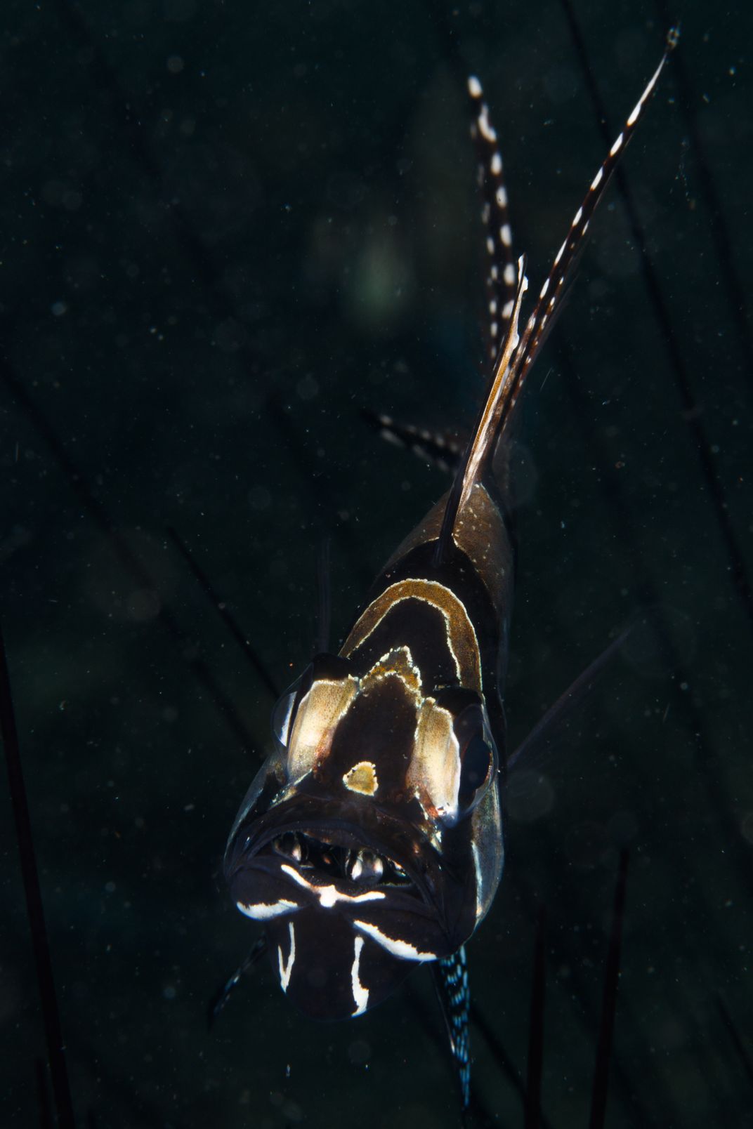 A male Banggai cardinalfish was sheltering his newborns inside his mouth, a scene captured in the shallow waters of Indonesia. The curious fry peek out, eager to explore the world, while their cautious father kept them safe from unseen dangers.