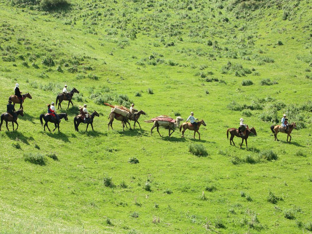 Caravan of Kyrgyz nomads at the ethnofestival.
