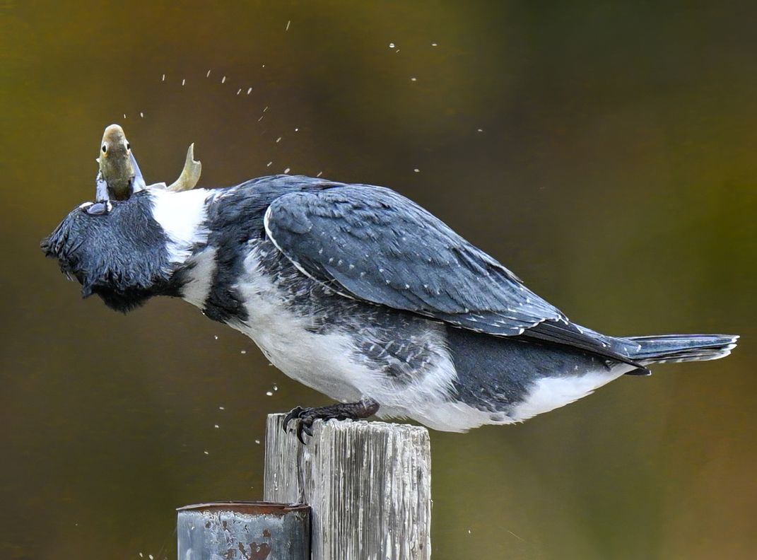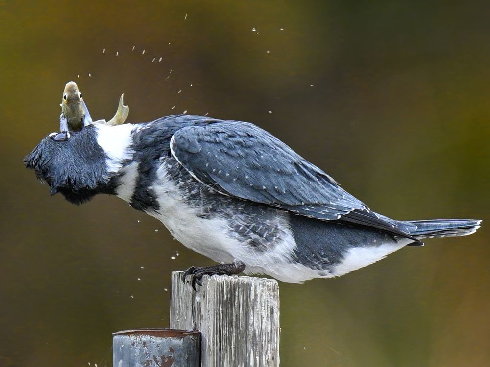 A Belted kingfisher violently shakes its catch to disorient and subdue it before attempting to swallow it head-first while on an afternoon hunt at Huntley Meadows Wetlands in Virginia.