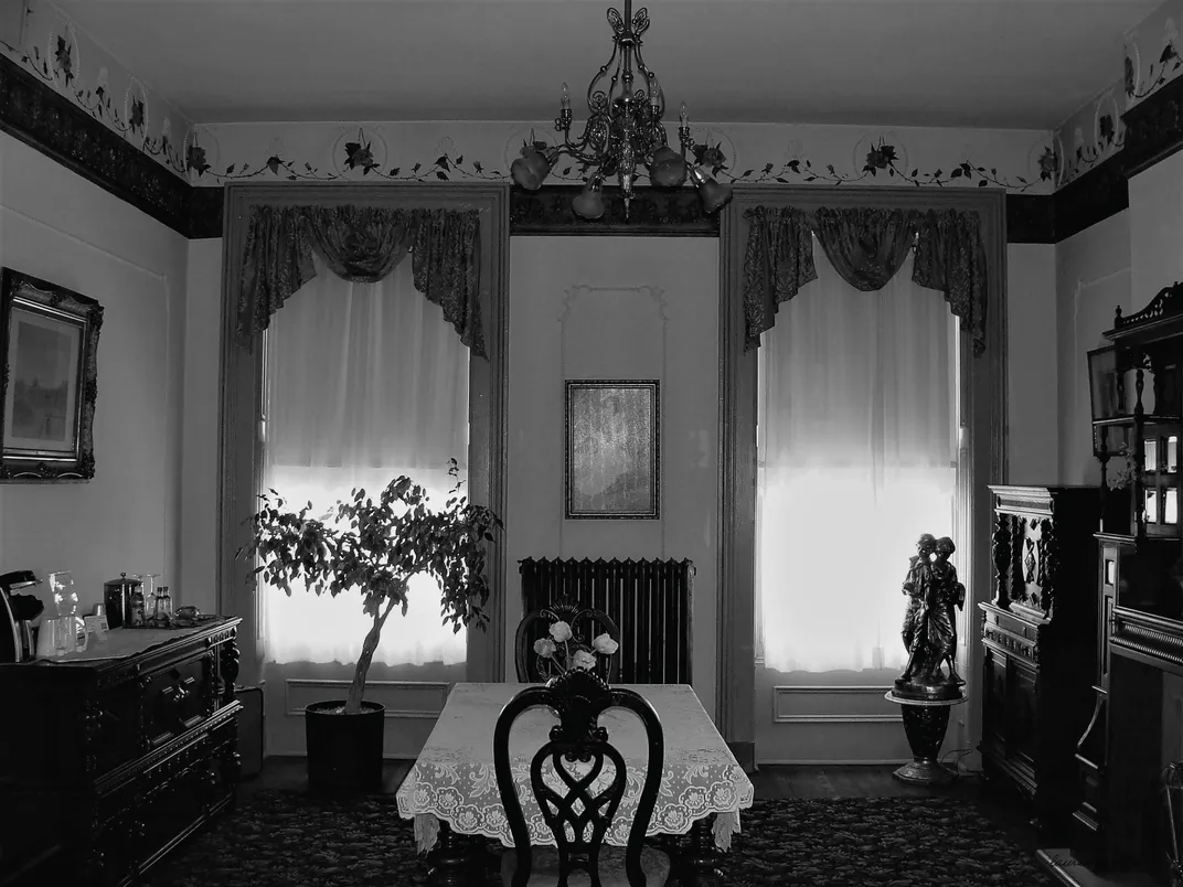 In the Lemp Mansion there is a 3 room suite, composed of a sitting room; this photograph. A bathroom and Lady Lemp's bedroom. She so carefully was very involved in every detail of her suite. Her bathroom made up of imported Italian marble and fixtures. All the elegance of the Gilded age.
