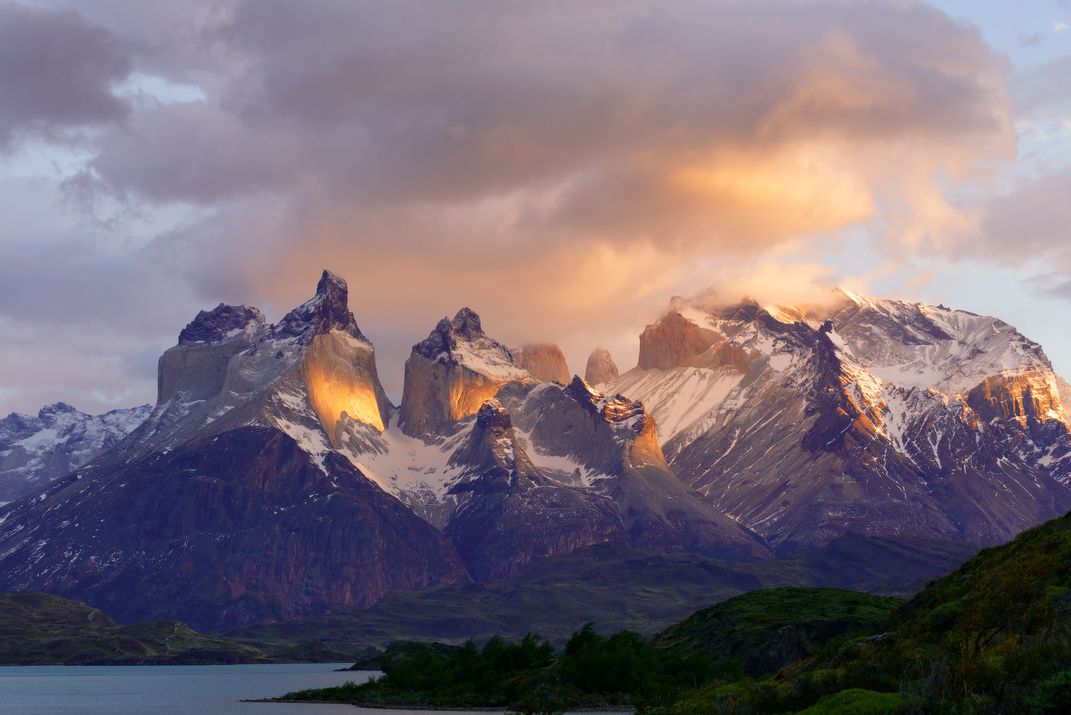 A beautiful sunset in Torres del Paine National Park, Patagonia, Chile.