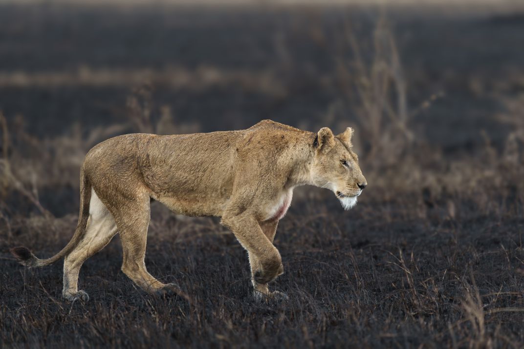 The life of a lioness is incredibly difficult. She must provide for the family, raise the children and support her mate. I captured this image of a lioness crossing the Serengeti in the aftermath of a rainstorm as she walked gingerly across a burned stretch of the savannah. The ground was still steaming with ashes and embers, yet she soldiered on despite being injured, soaked and exhausted.