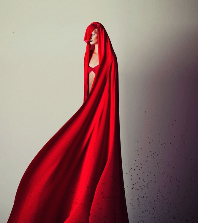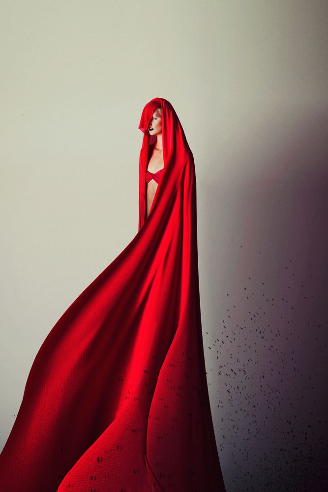 The lord of the flies standing draped in a red cape as the swarm moves towards the centre.