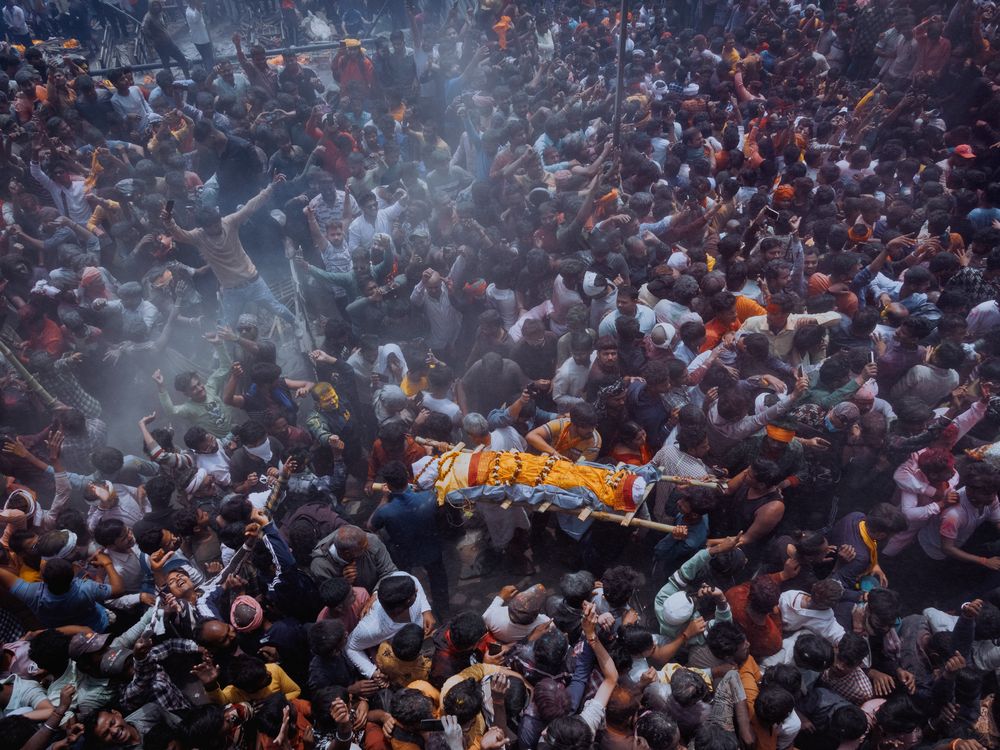 In the sacred frenzy of Varanasi's Masan Holi, ash rains from the sky, drums thunder, and bodies dance- yet through it all, one truth remains untouched; Death. As a family carries their loved one toward the Ganges, the chaos of celebration surrounds the stillness of departure. This photograph captures the raw power of ultimate silence- the kind that follows a final breath. Amid wild rituals and human noise, death speaks without sound. It doesn't shout; it simply is. In that silence lies a force greater than celebration- a quiet that outlasts the chaos.