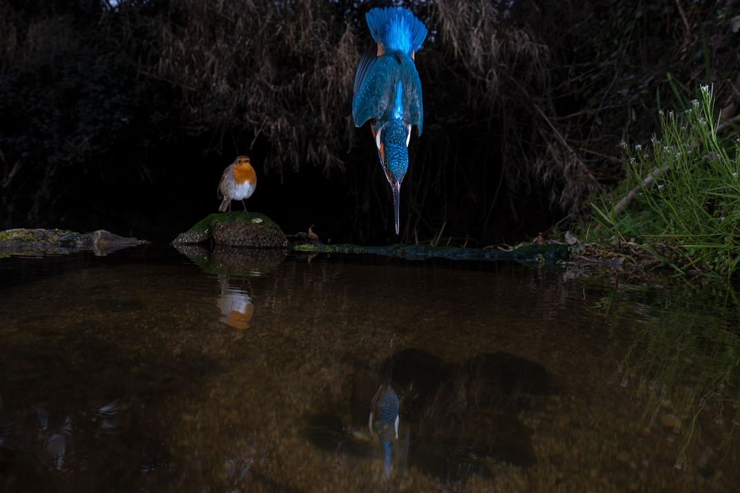 Along the river, just 45 minutes from Barcelona, I was ready to capture a unique moment — but never this. The kingfisher’s perfect dive was already a dream shot, and the robin watching from behind became the unexpected cherry on top.