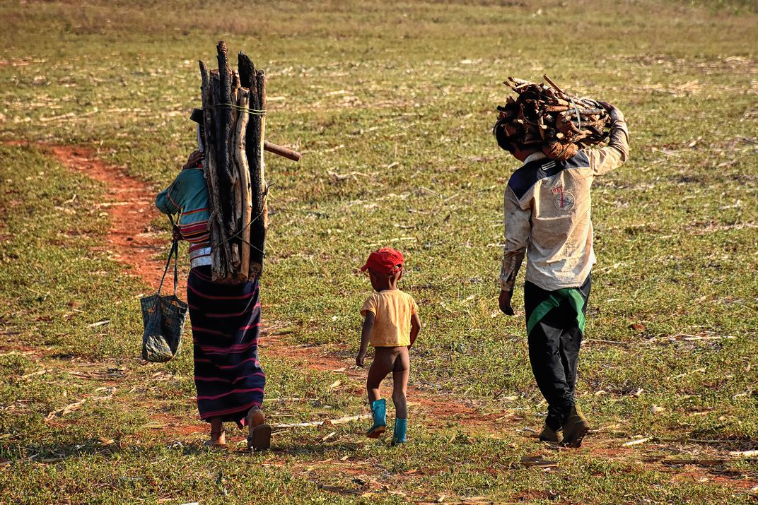 When I went to the country side, I saw a family carrying a lot of wood which is used to be for cooking. This is the returning home from work and the child can't even put on trousers. Life is not like a fiction.