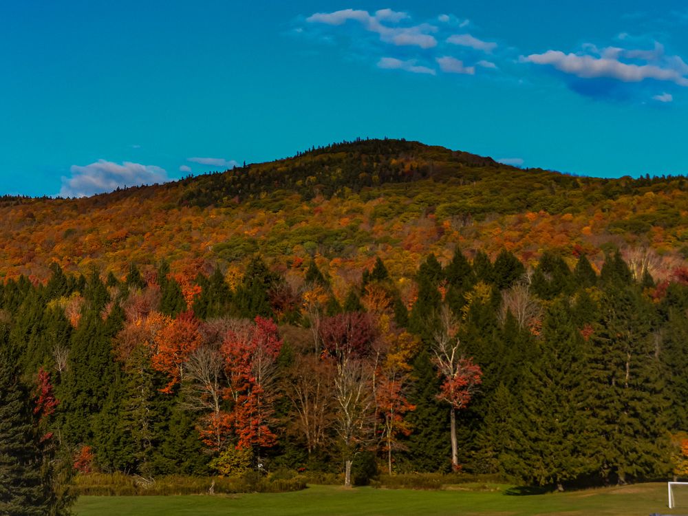 This picture depicts a mountain in Manchester, Vermont at the peak of Autumn Season.