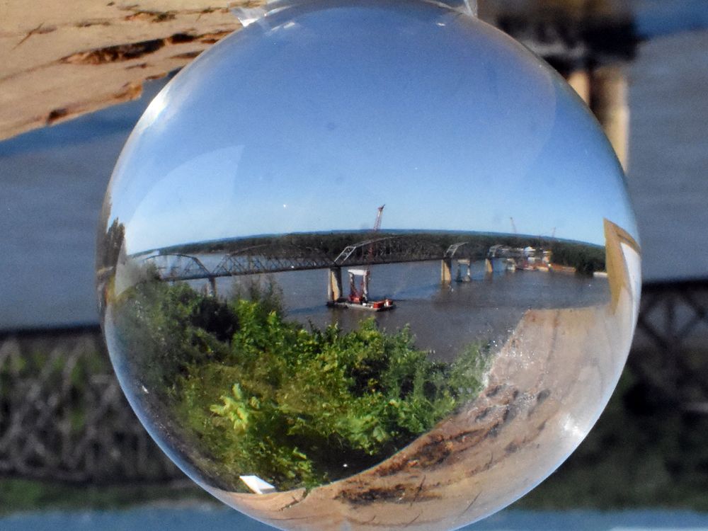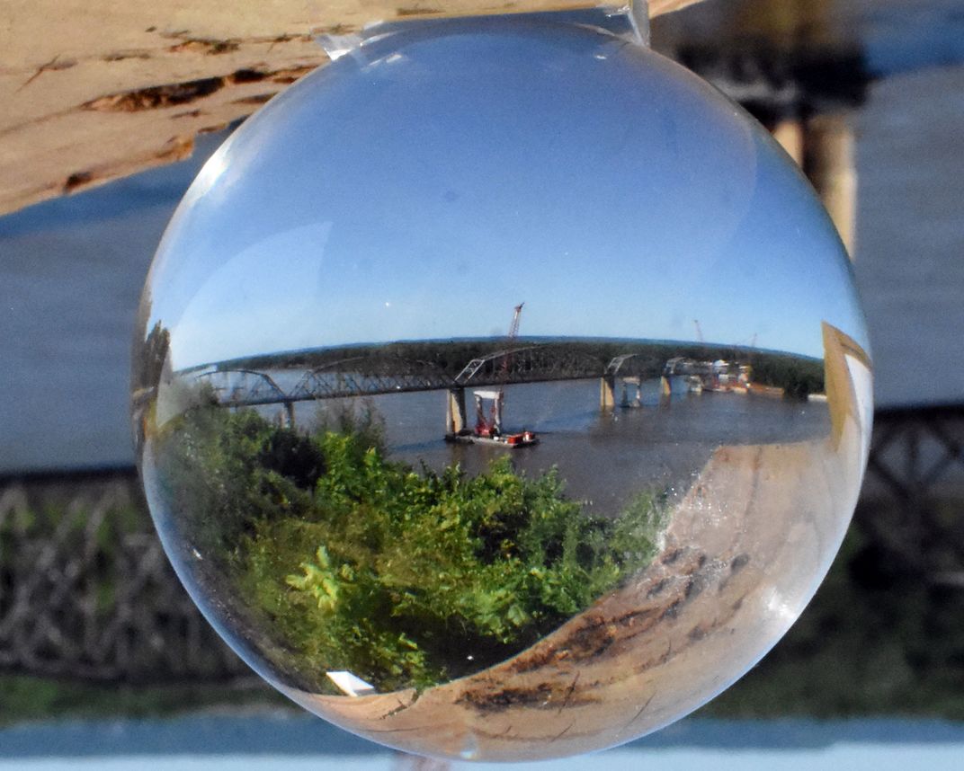 I've been wanting to play around with crystal ball photography. We traveled back to my hometown in Louisiana, Mo where I perched myself on a river lookout and balanced my crystal ball to capture the bridge construction.