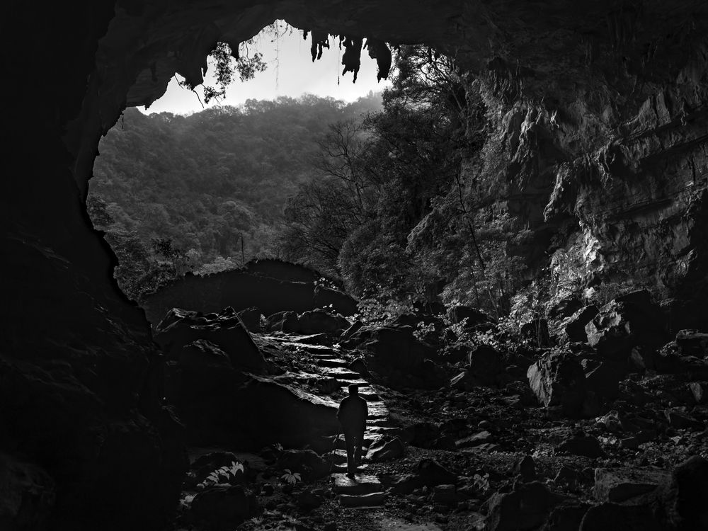 中国南方喀斯特地貌形成的溶洞,是众多户外旅行者的乐园,在贵州荔波经历穿越溶洞的漫长、恐惧、探索、好奇的心情后,在出洞口时瞬间豁然开朗。(The karst caves formed by the karst landforms of southern China are a paradise for many outdoor travelers, and after experiencing the long, fearful, exploratory and curious mood of passing through the karst caves in Libo, Guizhou, they suddenly open up when they exit the cave.)